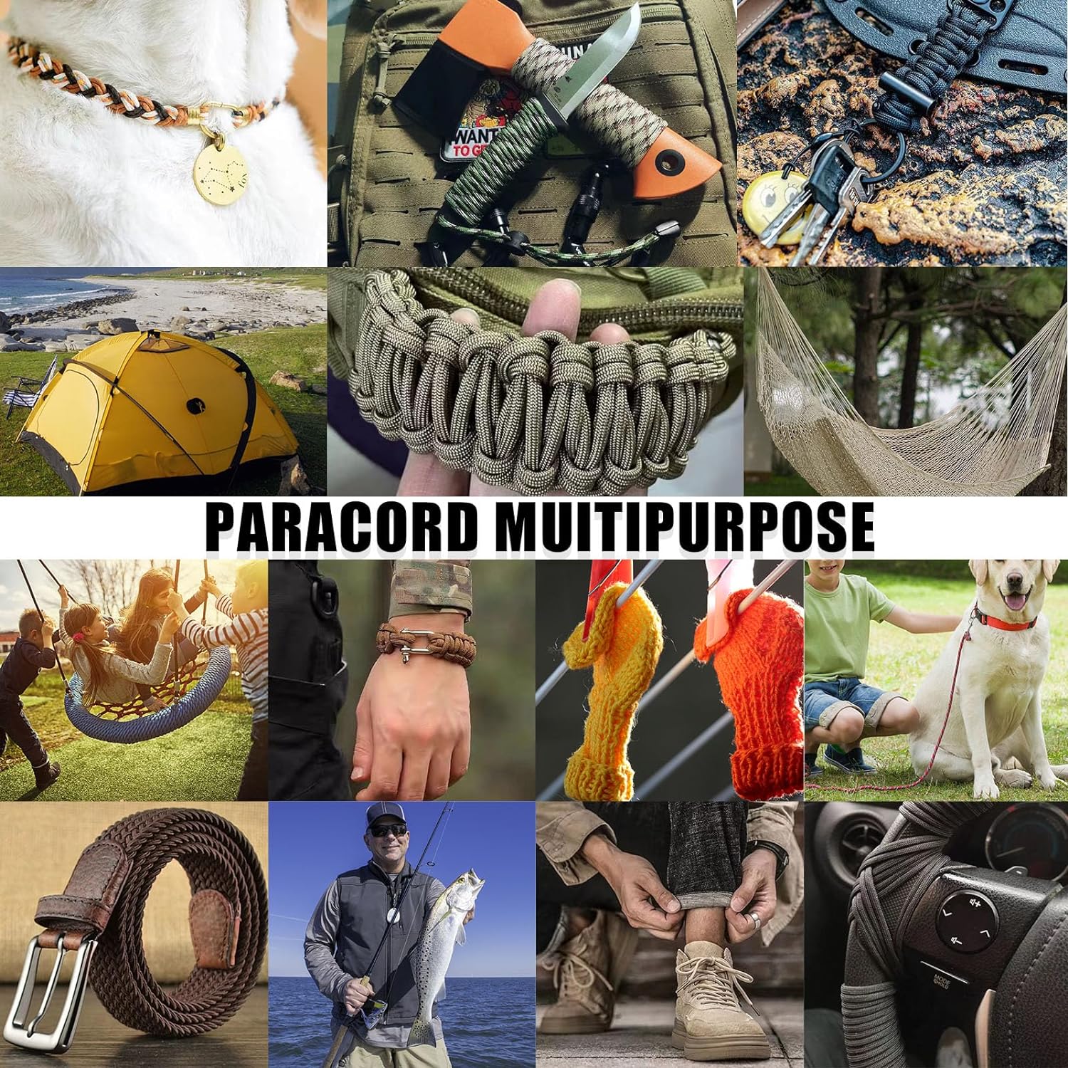 Essential for Indoor and Outdoor Use: Our para cord is perfect for DIY crafting parachute bracelets, survival bracelet, dog collars, dog leashes, keychains, wrapping belts and various tools. It can also serve as shoelaces, clothline, swing rope , used as fishing lines, for sewing, perimeter marking, shelter, repairs, and setting up traps