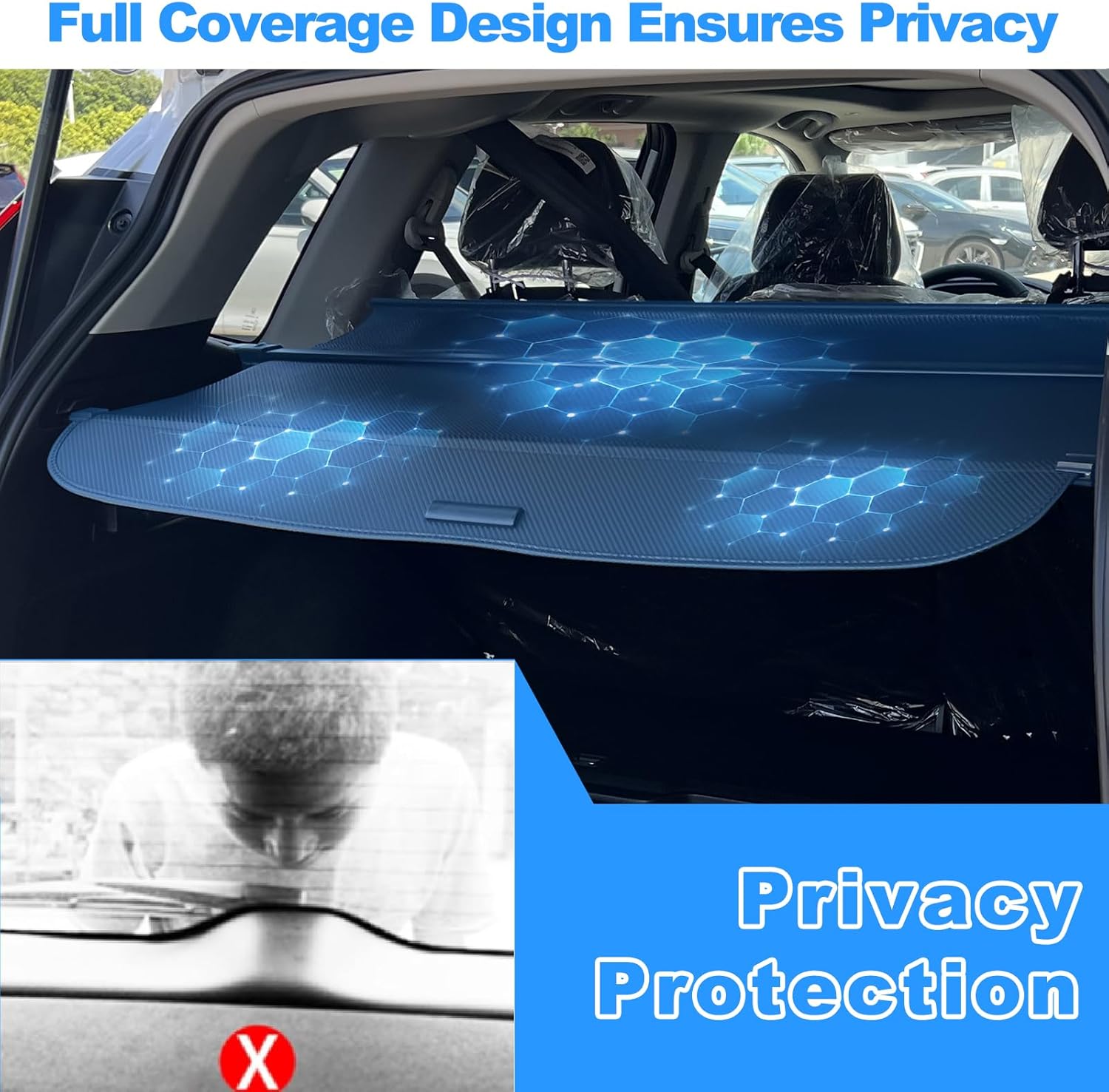🚗USEFUL FUNCTIONS: Auxko privacy cargo cover for honda crv 2023-2025 effectively protects private items from UV radiations, hide your precious property under the cargo cover to add security and peace of mind, divides the trunk area into two functional areas, and the handy items can be put on the upper layer, helps to use the trunk space reasonably and keep the trunk neat and orderly.