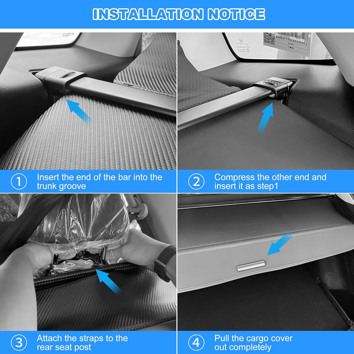 🚗NO NOISE OR GAP: The crossbar ends of this trunk cover for 2023-2025 Honda CRV is covered with soft flannel to avoid scratching the car interior and noise in driving.No gap between the trunk cover and the last row of seats. No worry about items falling down from the curtain in driving.