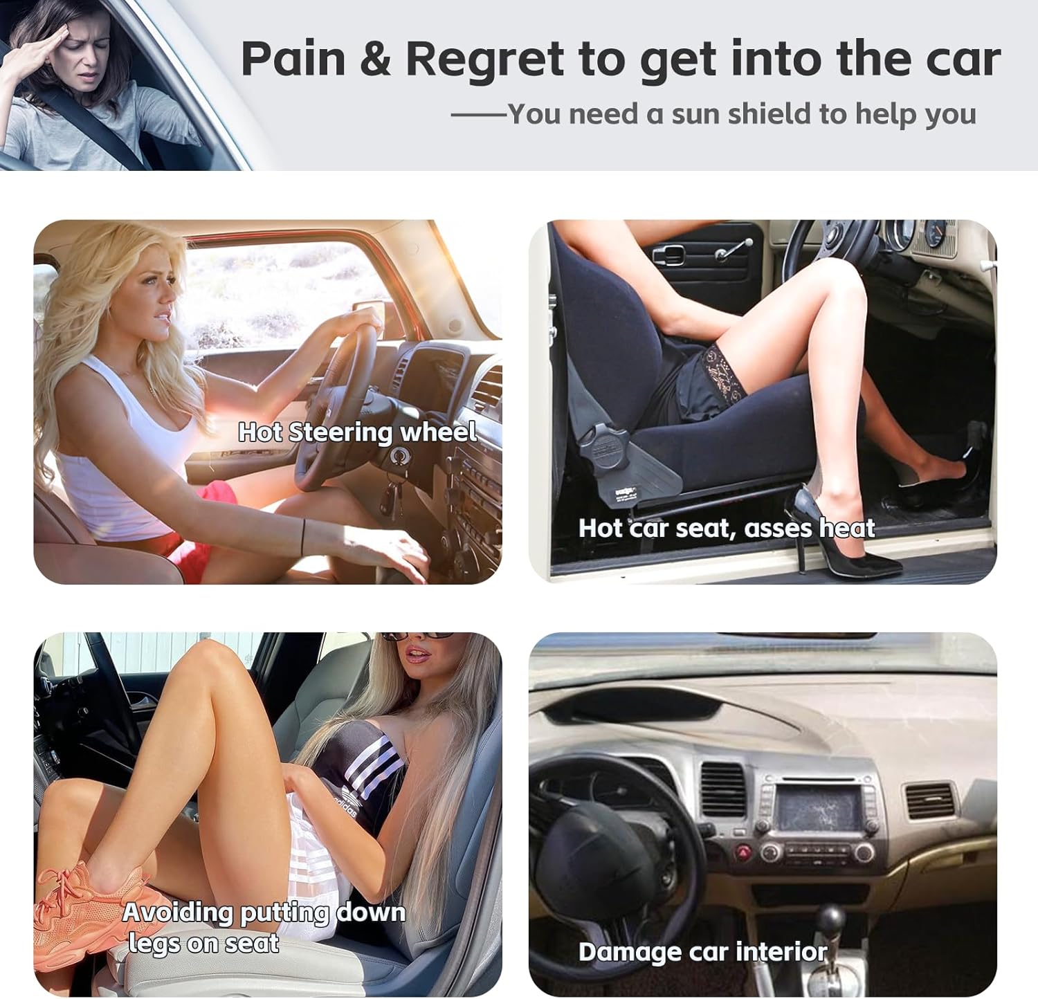 【The latest upgrade】The sunshade is made of 240T fabric with a thicker density, Nano coating, 4 anti-UV layers, and better reduce of the heat and UV rays.Double D-shaped steel ring design, So useful is the sunshade that allows you to enter the car easily .