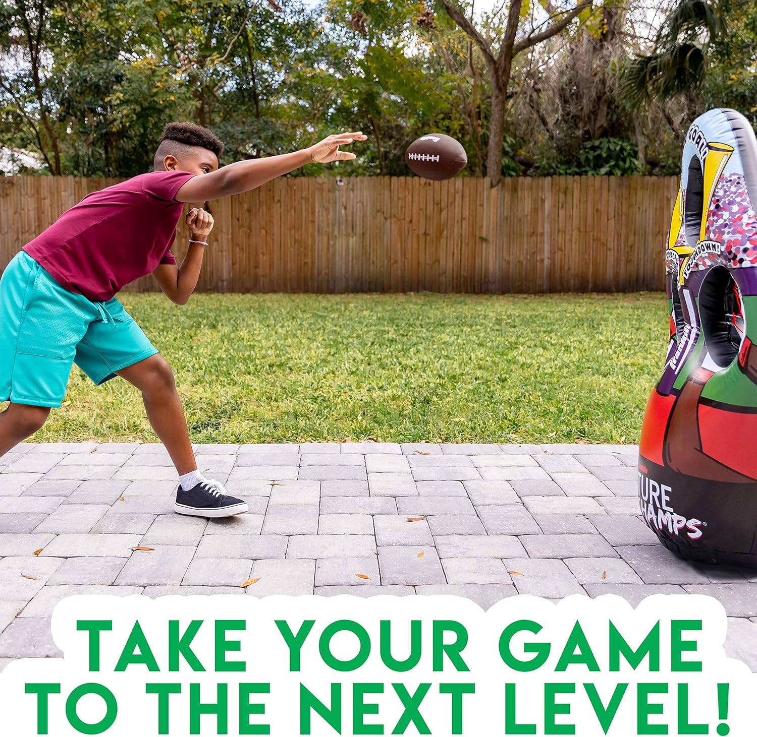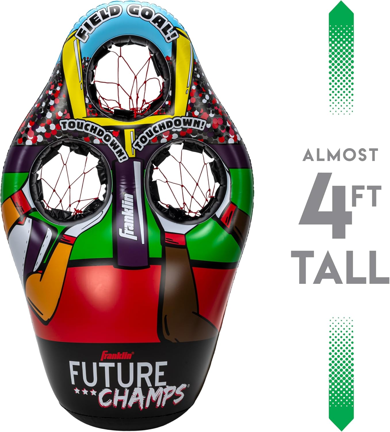 FOOTBALL ON THE GO: The inflatable 3-hole football target stores and travels easily, making it perfect to take on the go!