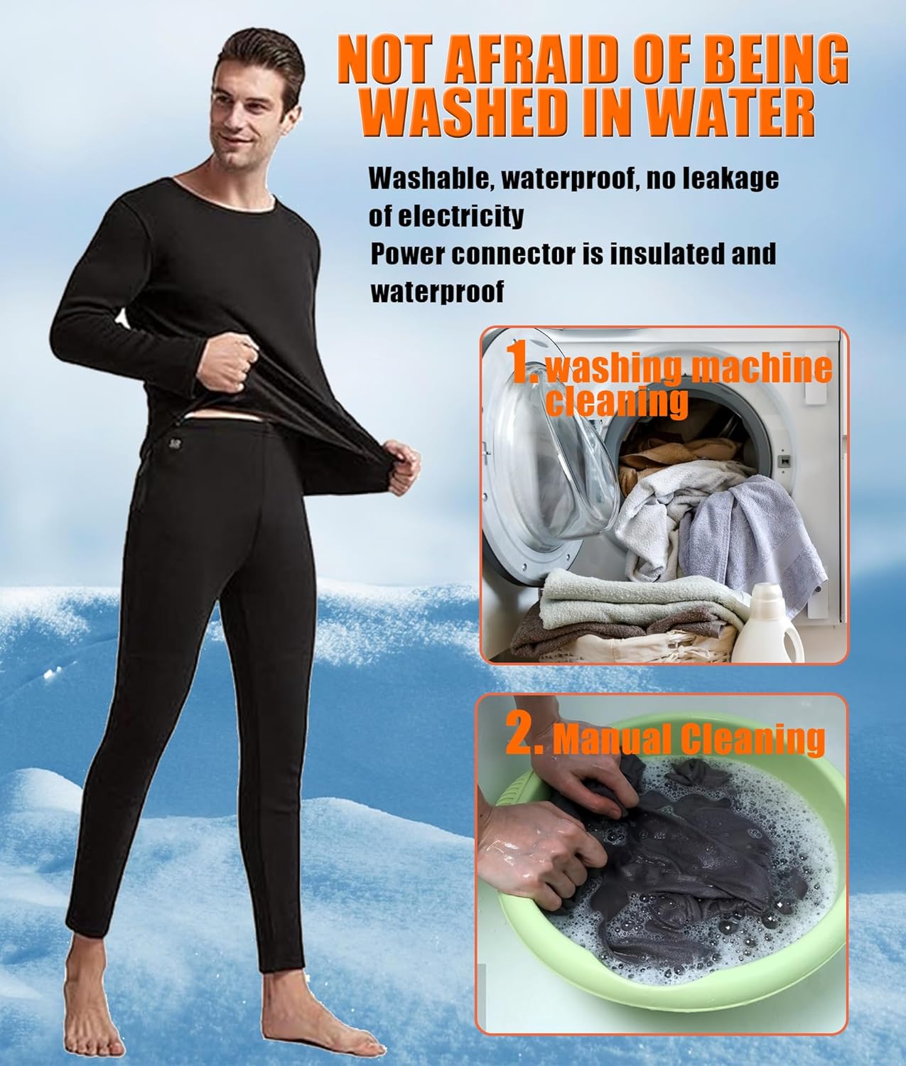 Men’s Heated Thermal Underwear Set have been tested and can be machine washed and and time again.
