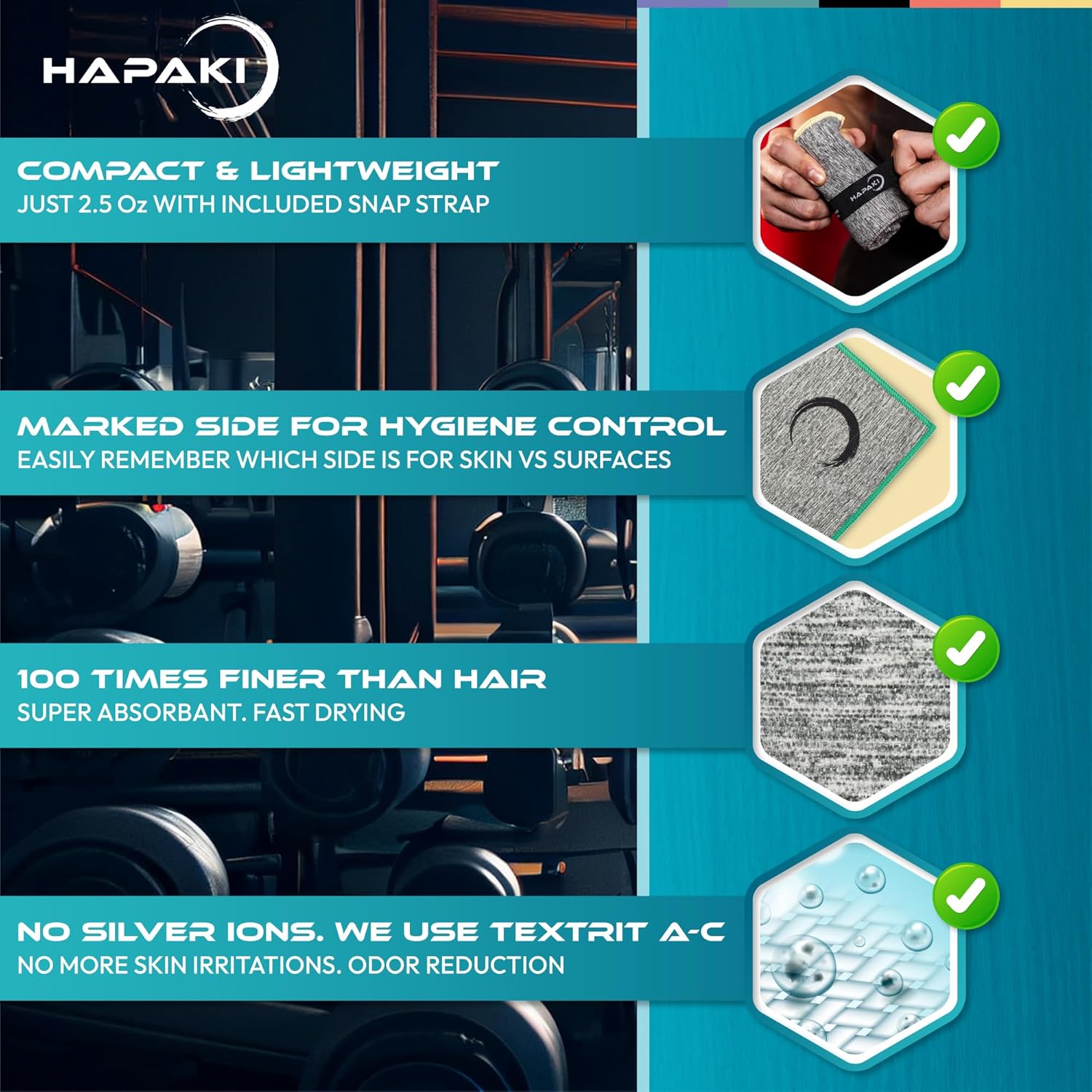 IT’S MICROFIBER REDEFINED – Our Hapaki sweat towels for gym utilize a microfiber material that’s 100 times finer than human hair. When merged together in weave form, this creates unmatched softness, durability, absorption and wicking that’s skin friendly & sports ready.