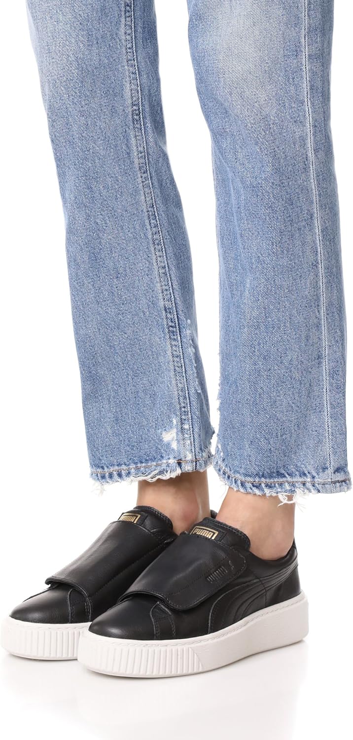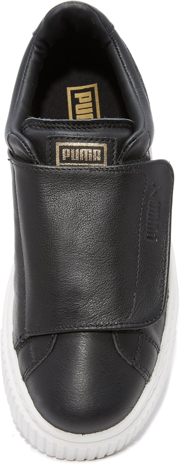 The platform is inspired by the grunge fashion movement of the 1990s. With its high outsole combined with a suede upper, it is a collaboration between two iconic movements in the sneaker and footwear industry. This latest update is a unique fashion approach. Featuring a premium leather upper with a big strap covering the top of the silhouette for fastening. An elegant leather shoe, perfect for this seasons city outings.