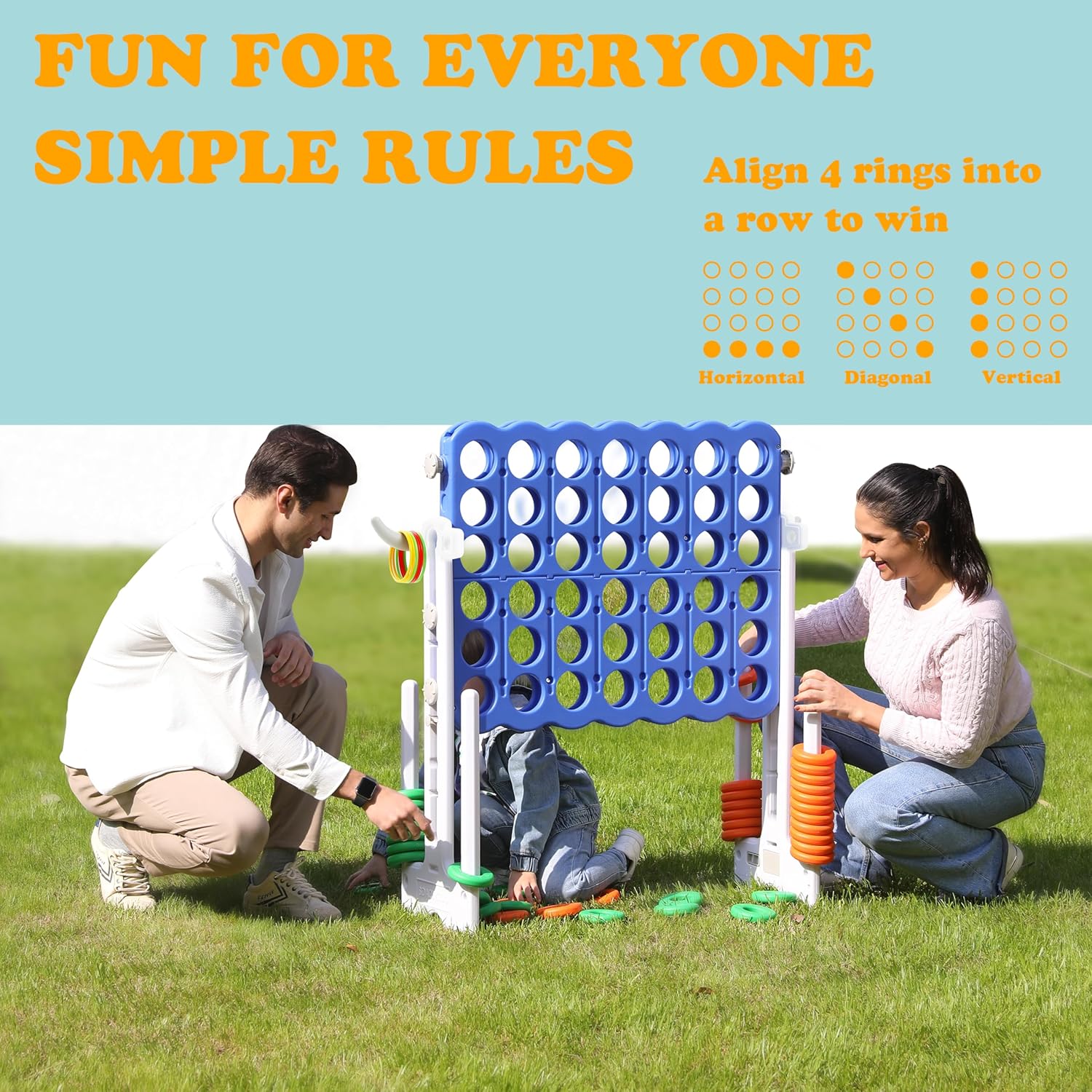 **Effortless Assembly & Portable Design**: Our jumbo 4-to-score game sets up or disassembles in minutes, offering convenient, on-the-go fun for your gatherings. With tool-free assembly and a lightweight design of only 17 lbs,it’s perfect for outdoor use.